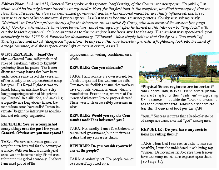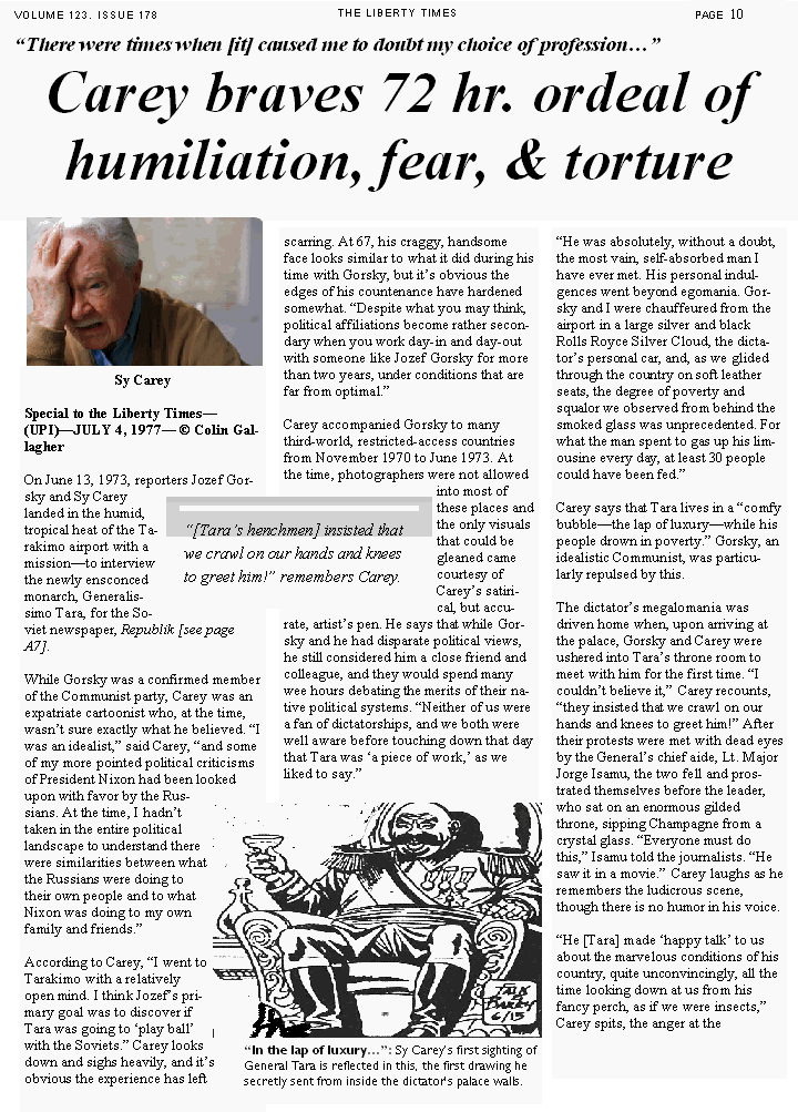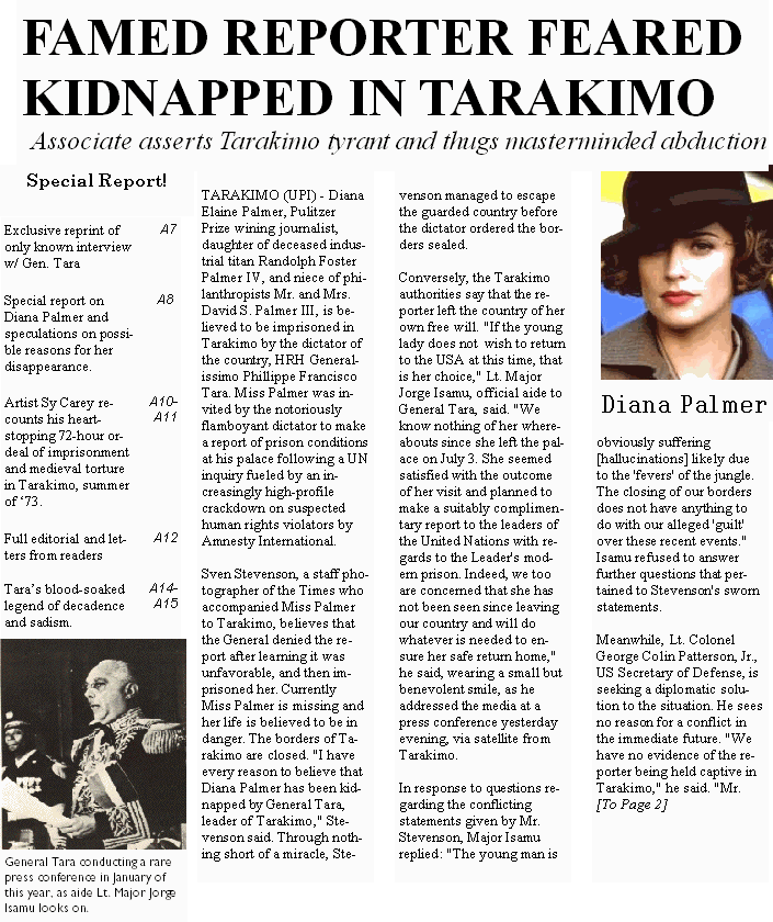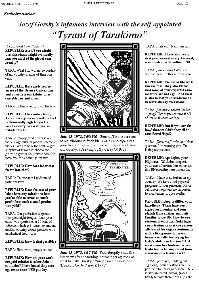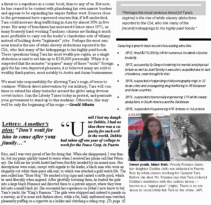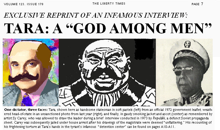 runs afoul of evil dictator General Tara, while attempting to expose his