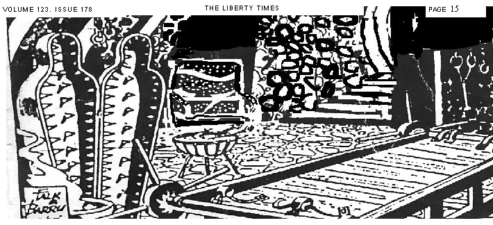 Carey says, was a Judas Cradle to the right of the pillories. © Sy